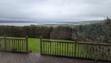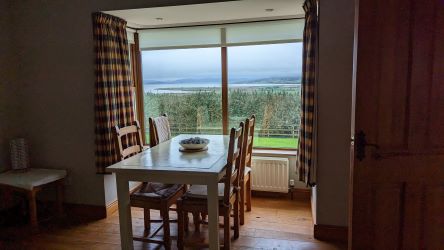 Detached three-bedroom, three reception rooms, three bathroom house, with separate garage on elevated site overlooking The Big Isle and with uninterrupted views of Lough Swilly.